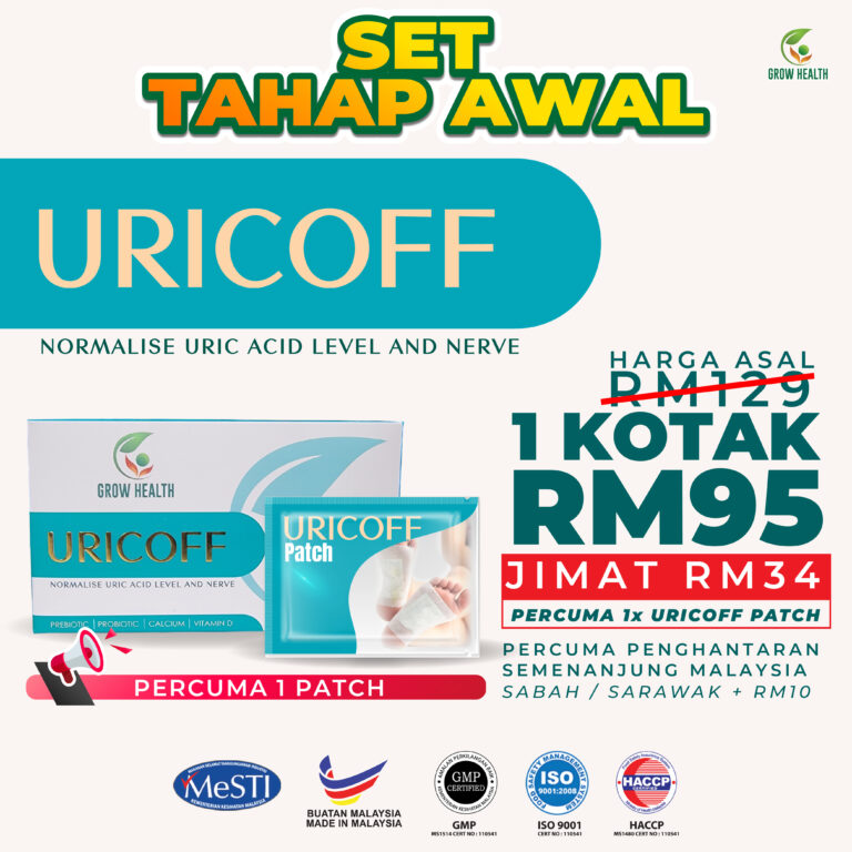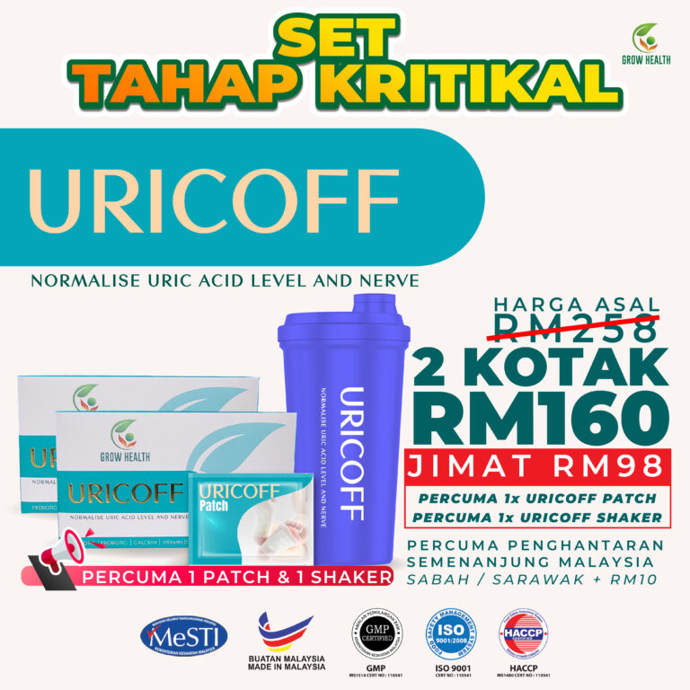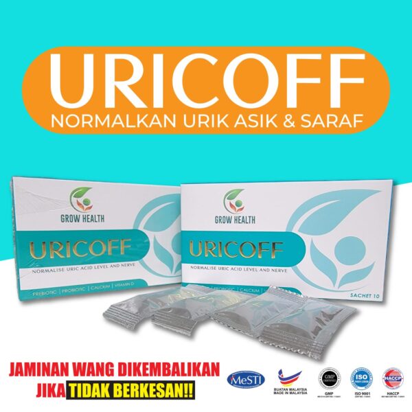 URICOFF, produk yang bersifat suplimen dihasilkan melalui Teknologi Terkini dengan gabungan bahan-bahan semula jadi yang di fomulasi khas untuk pesakit GOUT di Malaysia yang meredakan dan menurunkan Urik Asid yang TINGGI ke tahap yang NORMAL dalam masa 2 JAM